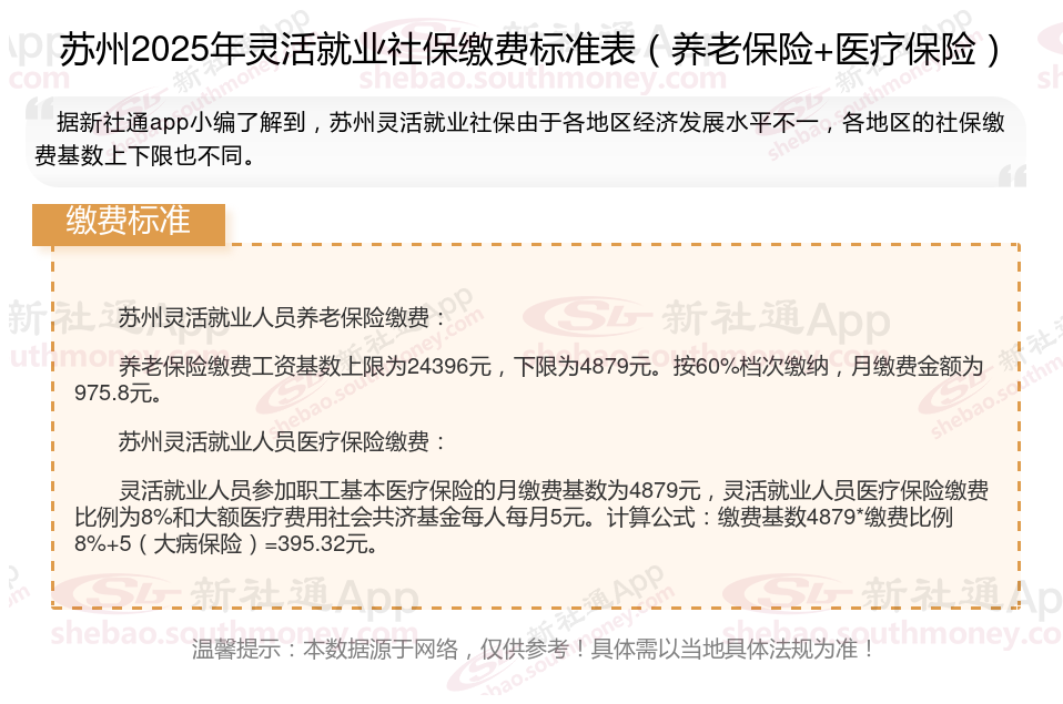 二、苏州2024-2025年灵活就业社保缴费基数、比例最新消息