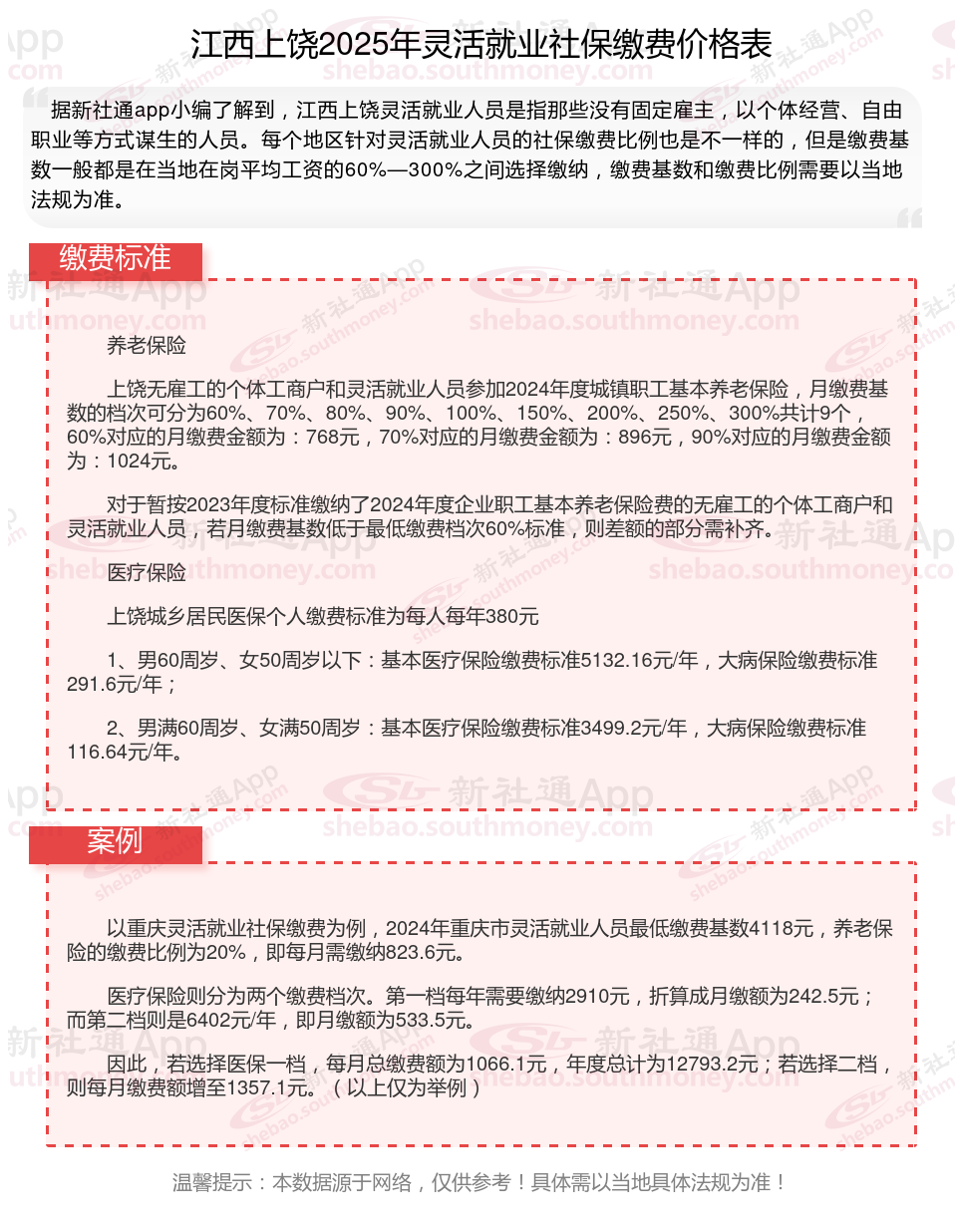 二、江西上饶2024年灵活就业社保缴费基数、比例最新消息