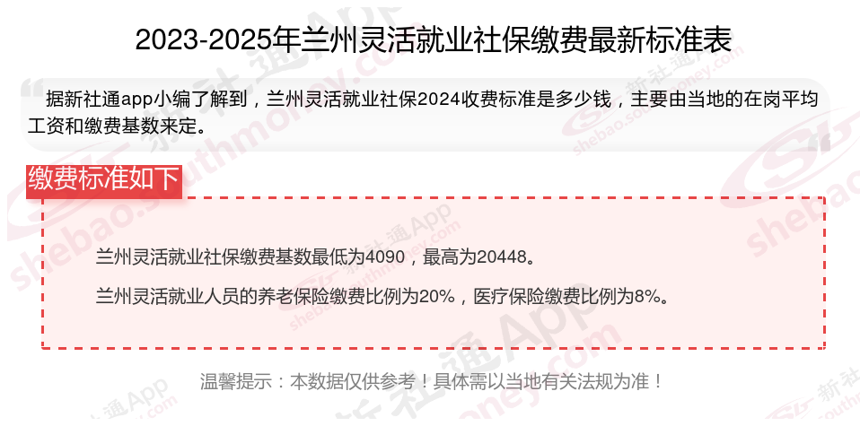 二、兰州2024年灵活就业社保缴费基数及比例最新消息