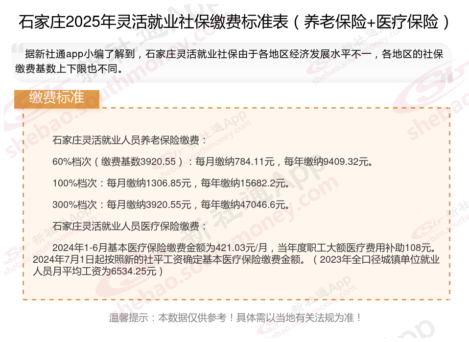 一、石家庄灵活就业社保缴费基数及比例最新消息