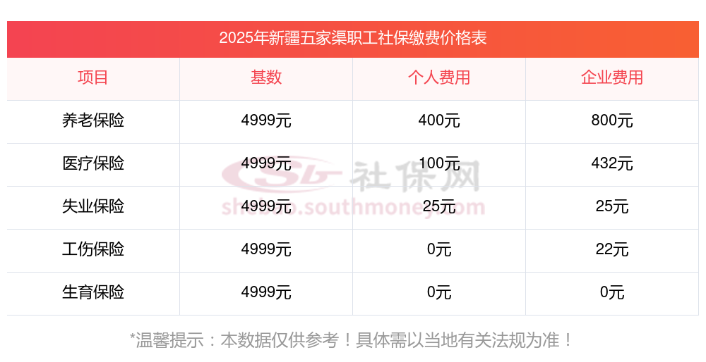 新疆五家渠社保缴费最新多少钱一个月?新疆五家渠社保缴费价格最新公布。2025新疆五家渠职工社保年缴费金额=社保月缴费基数*社保比例*12个月。需要提醒的,各地的社保缴费基数和比例是不一样的,因此,社保每年要交多少钱也是因地而异的。