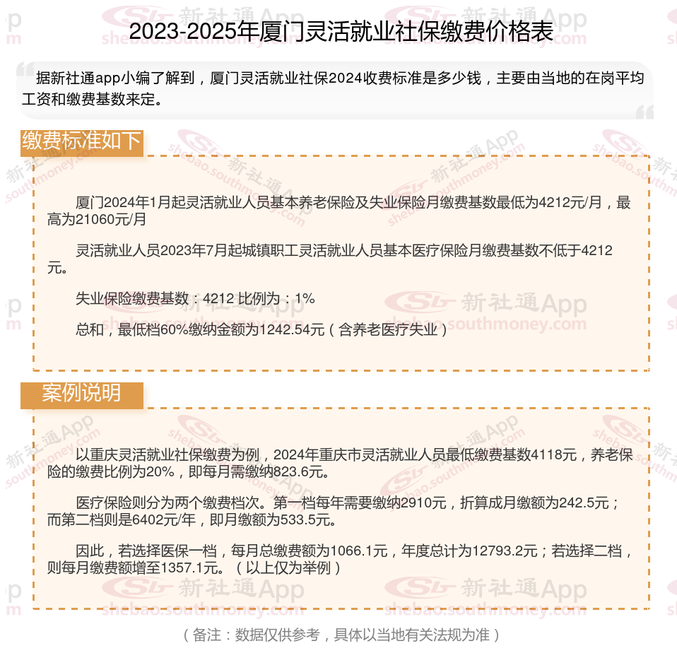 一、2024年厦门灵活就业社保缴费标准表 厦门灵活就业社保多少钱一个月?