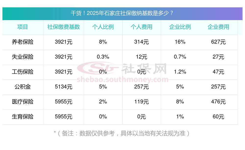 石家庄职工社保缴费多少钱?石家庄职工社保缴费基数最新参考为:3579.00,具体如下: