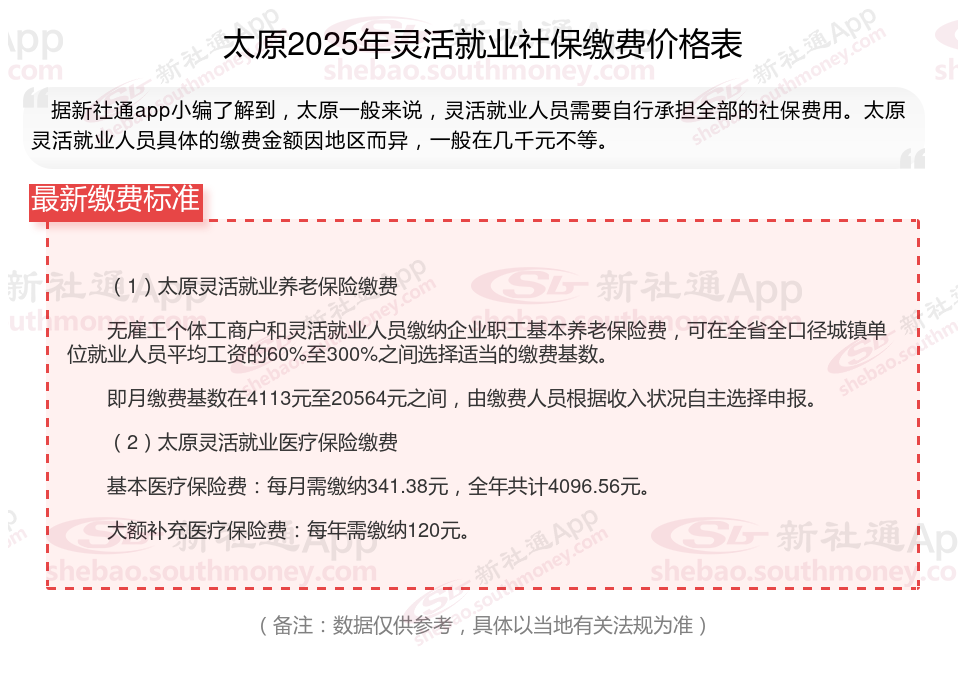 太原灵活就业人员社保缴费档次表:一般分为五个档次,具体为上年度在岗职工平均工资的60%、70%、80%、90%和100%。灵活就业人员可以根据自己的意愿选择缴费档次,缴费比例为20%,其中12%进入统筹基金,8%进入个人账户。