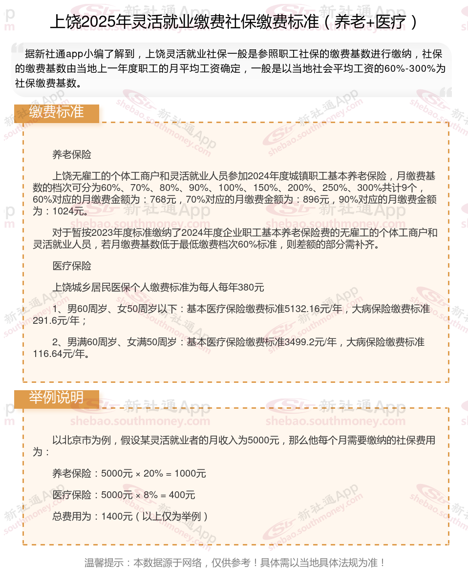 一、2025年上饶灵活就业社保缴费标准表 2025年上饶灵活就业社保多少钱一个月?