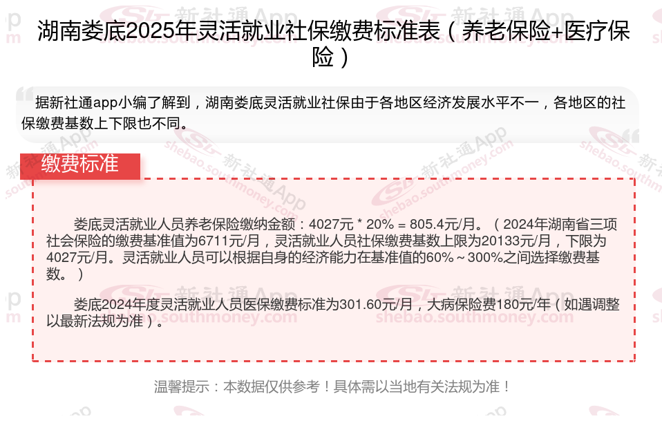 随着经济社会的不断发展,灵活就业群体日益壮大,其社保缴费问题也愈发受到关注。那么2025年湖南娄底灵活就业人员社保需要交多少钱,缴费比例是多少?下面随新社通小编一起来看看。