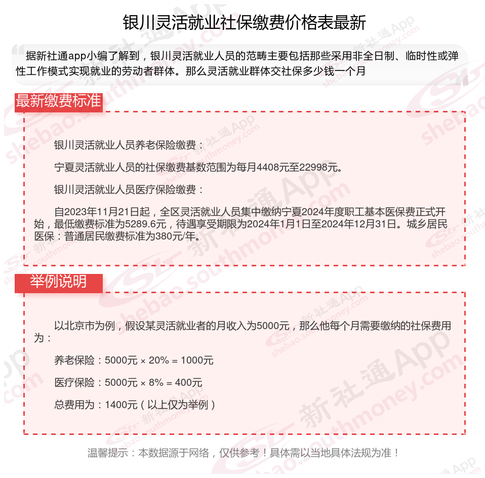 二、2024年银川灵活就业社保缴费标准表,最新如下: