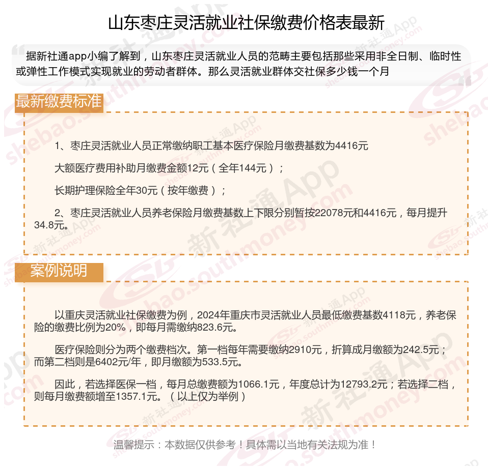 灵活就业社保缴费法规继续完善,涵盖了养老保险、医疗保险、失业保险等多个方面,旨在为灵活就业人员提供全面的社会保证。接下来随社保君了解一下2025年山东枣庄灵活就业人员社保交多少钱的详细内容。