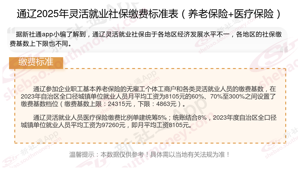 二、通辽灵活就业社保缴费基数及比例最新消息