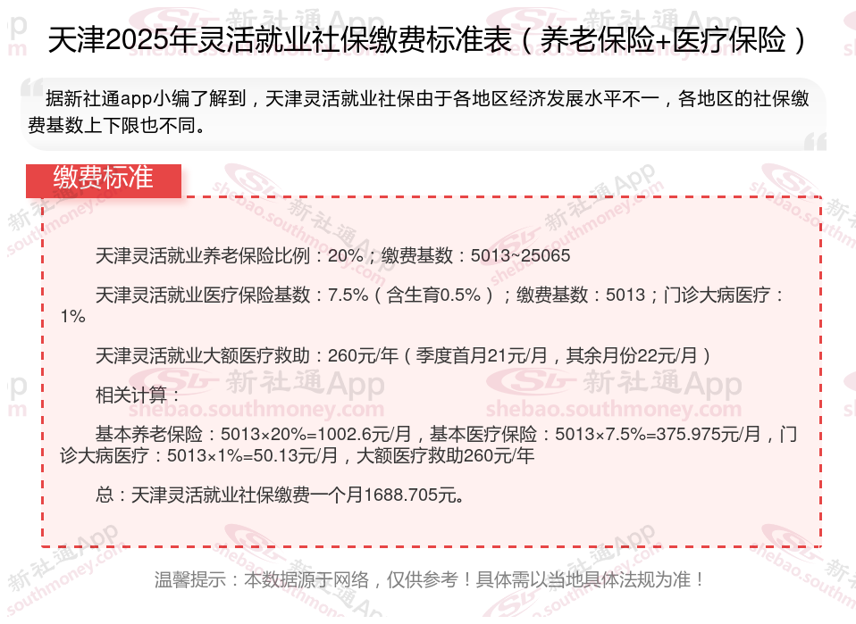 三、2025年天津灵活就业社保缴费标准,最新如下: