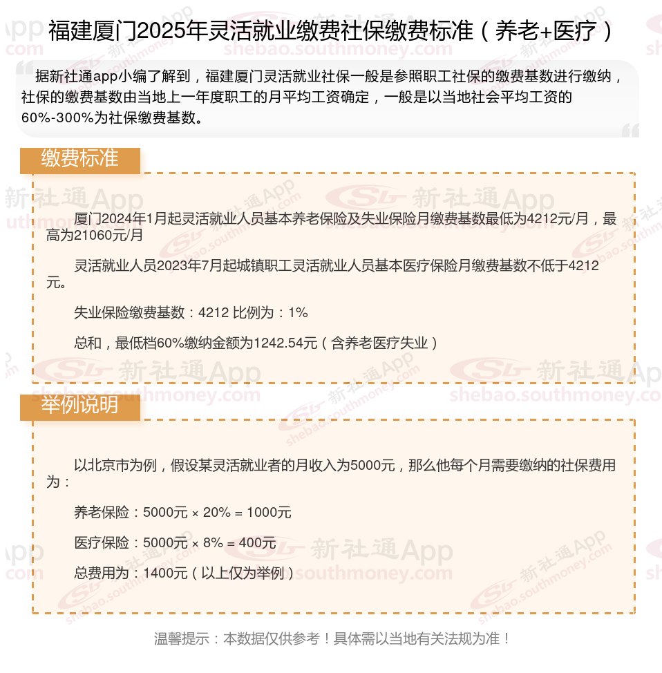 二、福建厦门2024年灵活就业社保缴费基数及比例