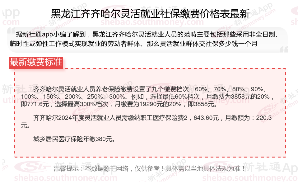 二、黑龙江齐齐哈尔2025年灵活就业社保缴费基数及比例最新消息