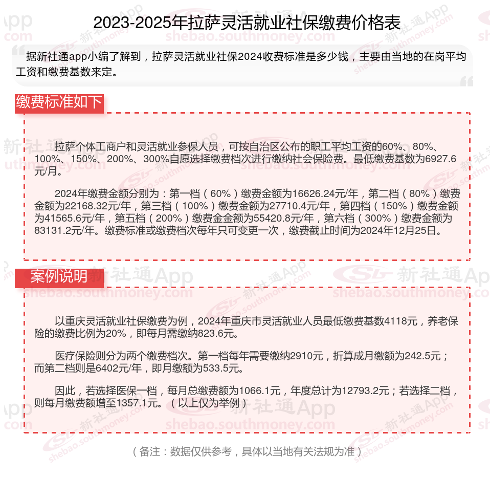 二、2024年拉萨灵活就业社保缴费标准表 拉萨灵活就业社保多少钱一个月?