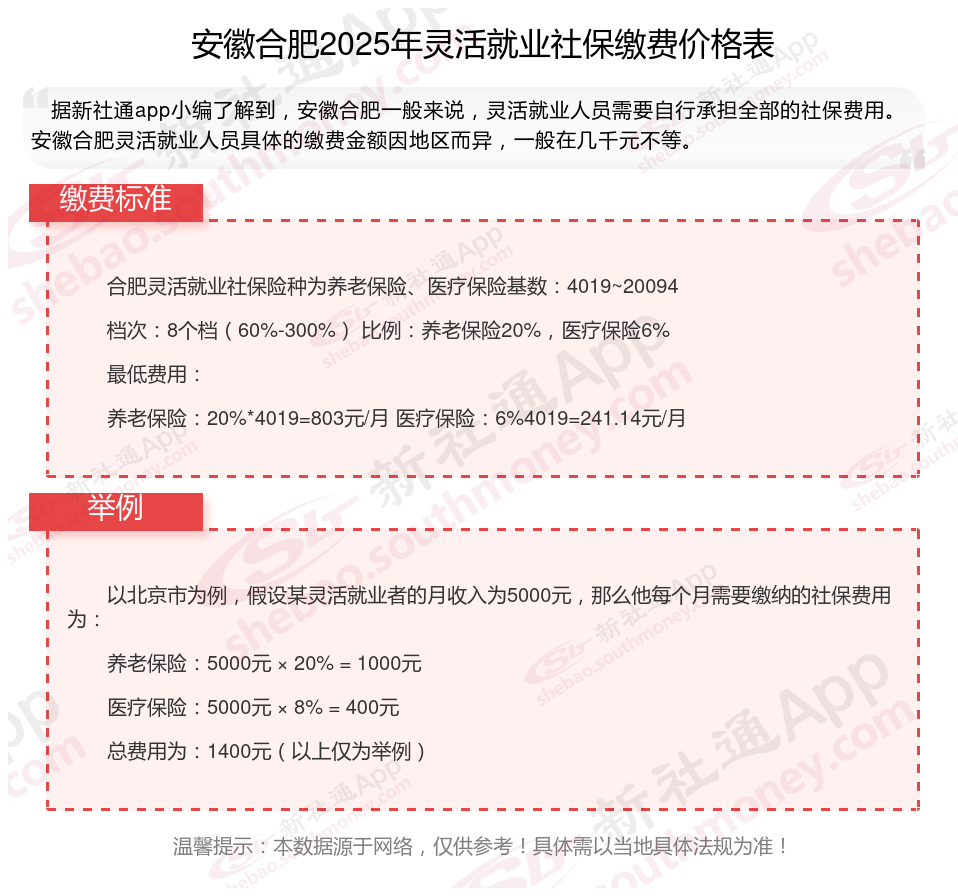 随着经济的发展和社会的进步,灵活就业人员越来越多,但是很多人不知道如何缴纳社保。本文将介绍2025年安徽合肥灵活就业人员社保缴费基数及如何缴纳社保,能领取多少钱,帮助大家更好地了解灵活就业社保,随着新社通APP小编一起了解安徽合肥灵活就业社保缴费最新资讯吧。