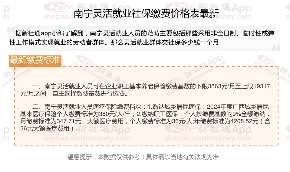 一、2024年南宁灵活就业社保缴费基数、比例最新消息