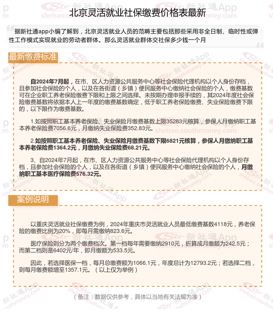 提示:北京灵活就业人员每个月的缴费压力还是比较大的,每个月的社保费用都是千元,缴费档次越高,灵活就业人员要缴纳的费用也越多。