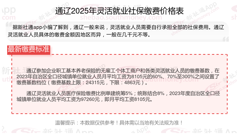 灵活就业,作为一种非传统的就业方式,近年来蓬勃发展。那么2025年通辽灵活就业人员社保需要交多少钱?下面随新社通小编一起来看看。