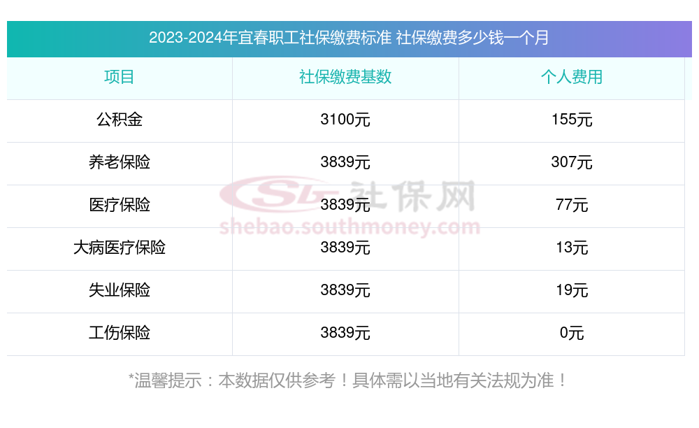 根据有关法规,宜春企业职工基本社保缴费基数暂按不低于3839.00元;