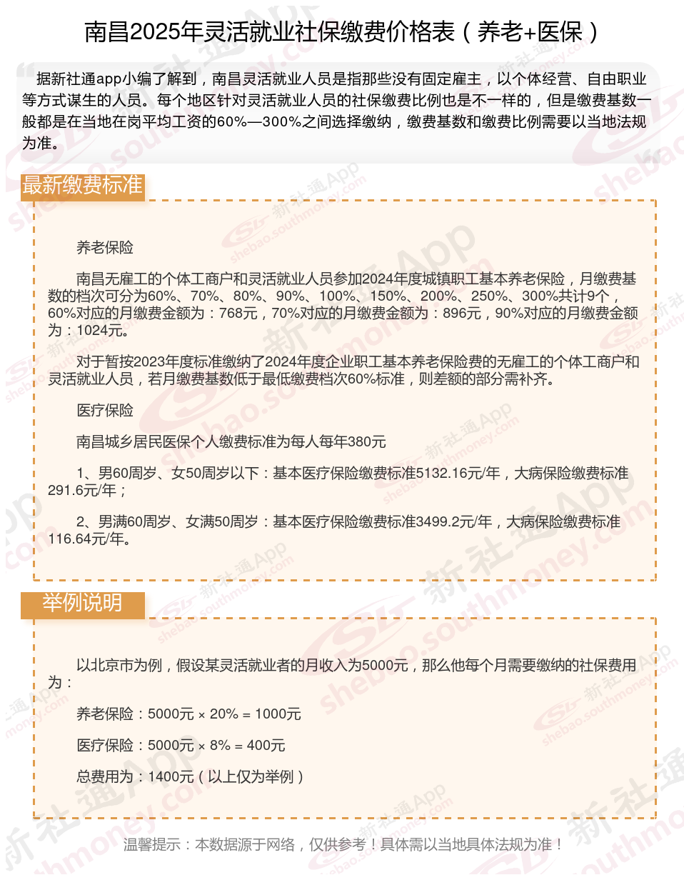 随着经济社会的不断发展,灵活就业群体日益壮大,其社保缴费问题也愈发受到关注。接下来随社保君了解一下2025年南昌灵活就业人员社保交多少钱的详细内容。