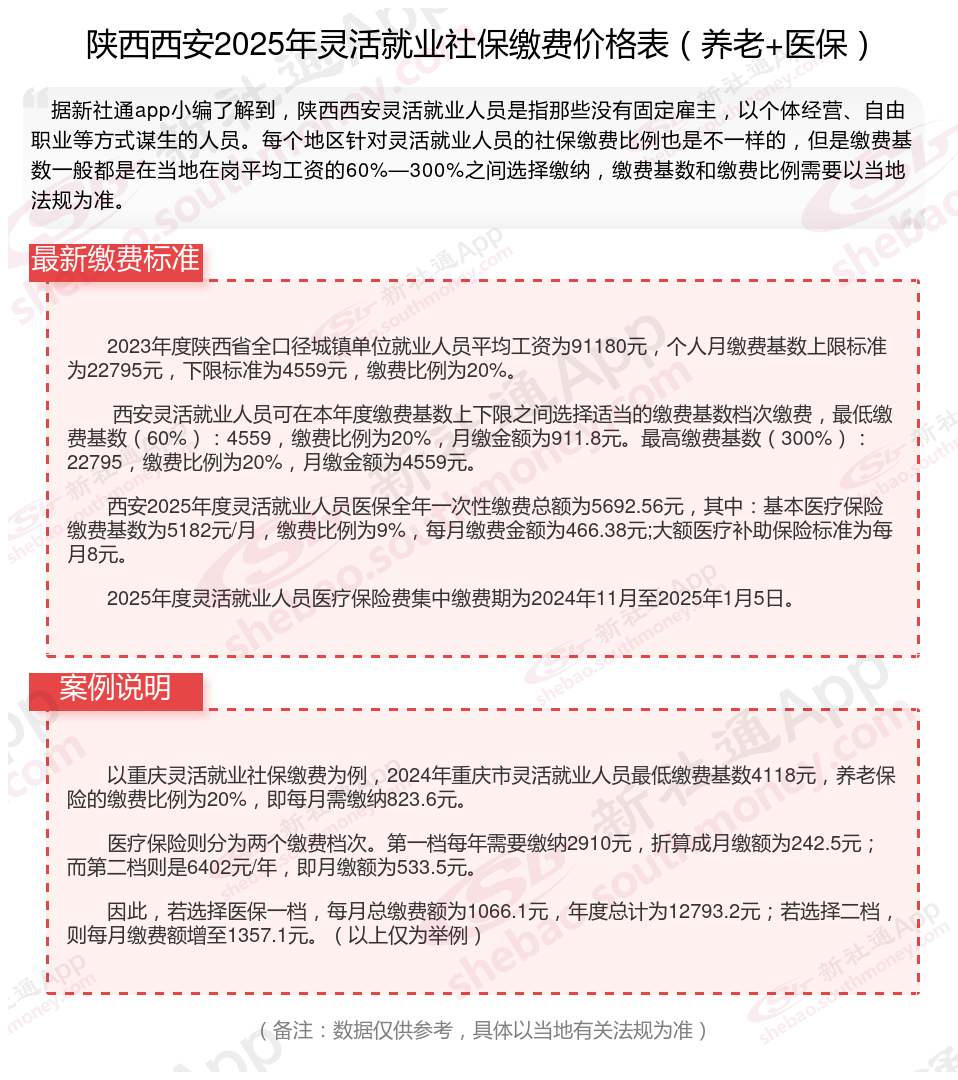灵活就业社保是指针对灵活就业人员的社会保险制。灵活就业人员包括个体经营者、自由职业者、临时工等,他们没有固定的雇主,因此需要自行缴纳社会保险。接下来随社保君了解一下2025年陕西西安灵活就业人员社保交多少钱,2025年陕西西安灵活就业社保缴费标准的详细内容。