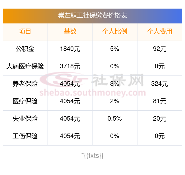 社保卡交社保每年多少钱?下表是2025年崇左社保费用明细参考,新社通app-社保缴费查询工具提供的最新数据如下:
