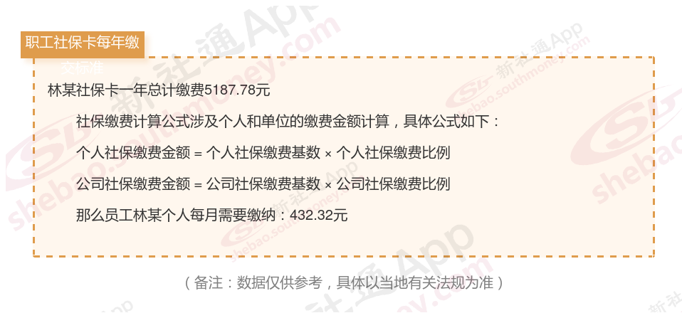 以上就是林某职工社保卡一年缴费金额的全部内容,希望对您有帮助,欢迎关注新社通app解锁更多社保专业资讯。