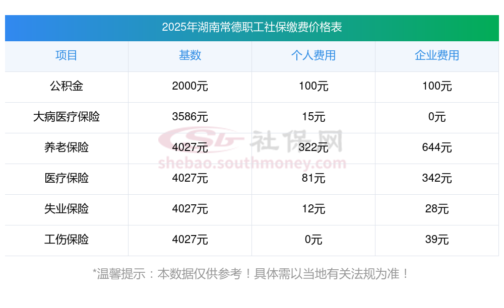 社保卡交社保每年多少钱?下表是2025年湖南常德社保费用明细参考,新社通app-社保缴费查询工具提供的最新数据如下: