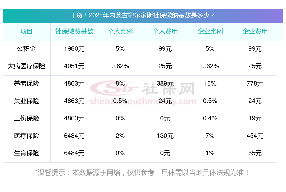 所谓缴纳社保,指的是个人或单位依照法规,按时、足额向社会保险缴纳费用的行动。接下来看看,内蒙古鄂尔多斯社保需要缴费多少钱?2024-2025年内蒙古鄂尔多斯社保缴费档次表??,如下: