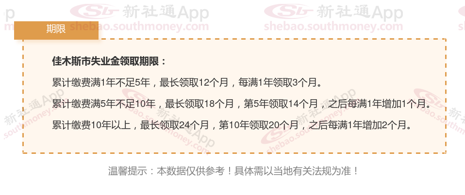 比如:佳木斯可以领取失业保险金的期限表
