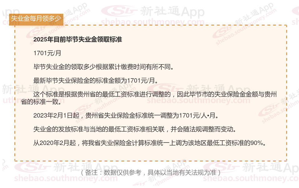 在这个瞬息万变的时代,失业已经成为许多家庭不得不面对的现实问题。面对突如其来的经济压力,失业金成为了许多失业者的救命稻草。关于失业保险金领怎么领?2025年贵州毕节失业金每月多少钱?如何申请?,随新社通小编来了解一下。