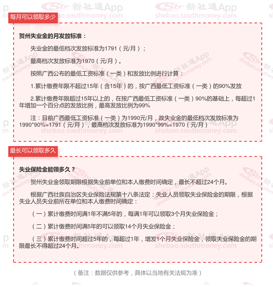 那失业金具体怎么申请的?领取的条件是什么?一起随新社通APP小编来了解一下关于贺州的失业金领取标准及条件。最新贺州失业保险金领取多少钱?