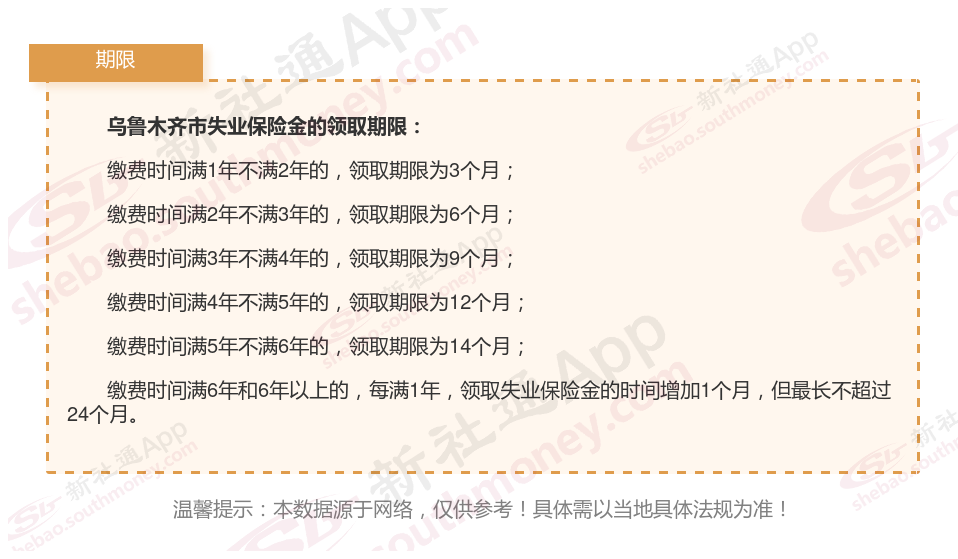 比如:新疆乌鲁木齐可以领取失业保险金的期限表