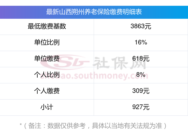 山西朔州的养老保险缴费金额因个人情况而异,包括个人缴费基数、缴费比例等因素。以下是一些参考信息:
