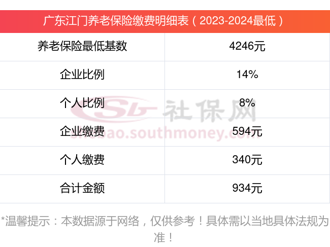 广东江门养老保险缴费金额的计算涉及多个因素,包括缴费基数、缴费比例等,且各地的具体方案可能存在差异。以下是一个基于一般情况的养老保险缴费金额计算举例: