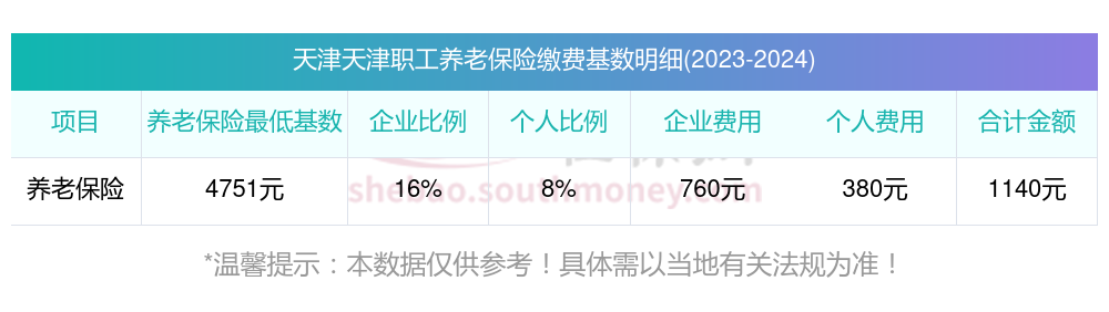 2023-2024年天津天津养老保险缴费比例及基数标准(最新)