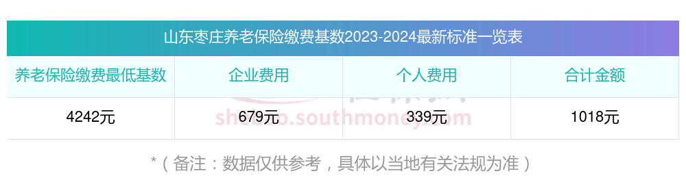 假设山东枣庄的养老保险缴费基数为4242元,个人按照8%的比例缴纳养老保险费用,企业按照16%的比例缴纳。则该职工的养老保险缴费计算如下: