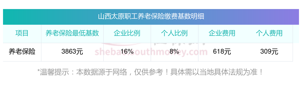 假设山西太原某企业职工小明的月工资为3863元,山西太原的养老保险缴费法规: