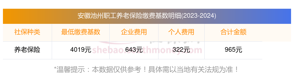 安徽池州假设某职工养老保险的缴费基数为4019元,单位缴费比例为16%,个人缴费比例为8%。
