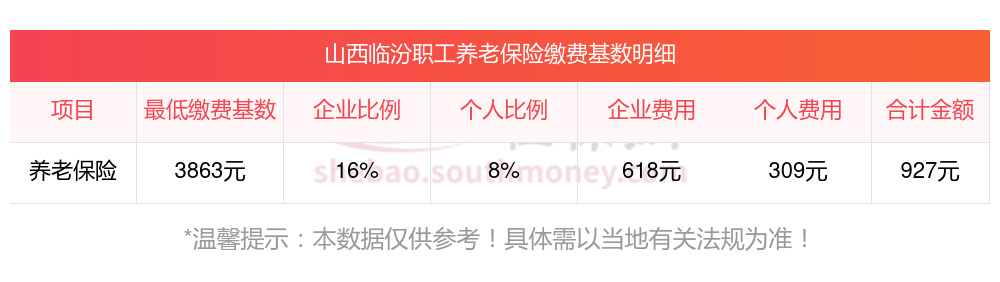 山西临汾养老保险缴费基数2023-2024年最新标准(最低)