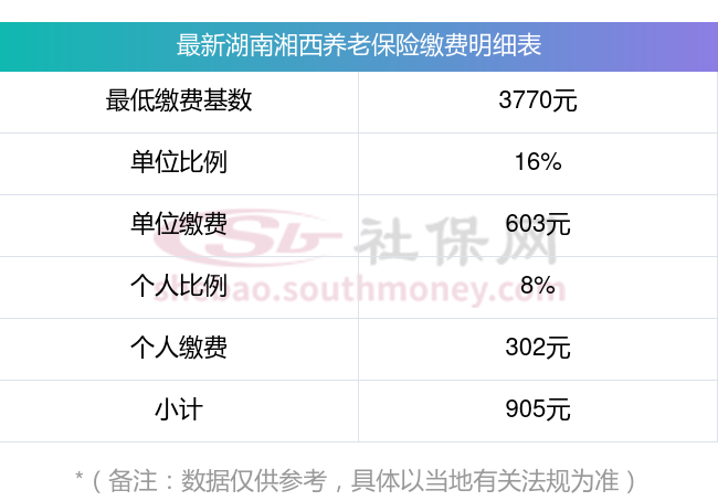 湖南湘西养老保险缴费基数2023-2024年最新标准(最低)