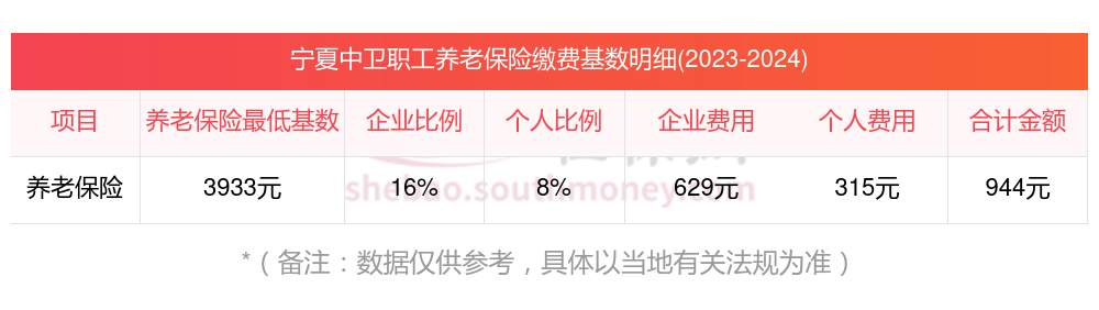 2023-2024年宁夏中卫养老保险缴费比例及基数标准(最新)