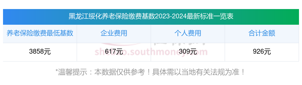黑龙江绥化养老保险缴费基数2023-2024最新标准