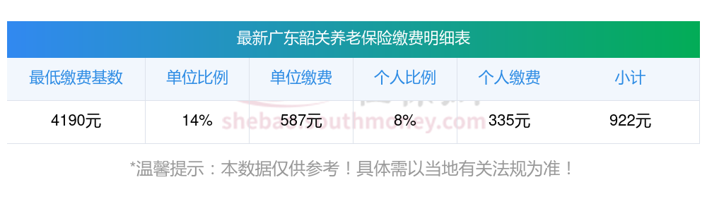 广东韶关养老保险缴费基数2023-2024年最新标准(最低)