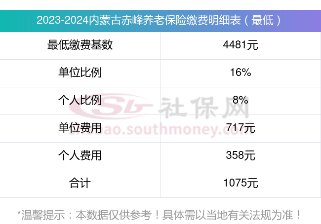 内蒙古赤峰养老保险缴费标准2023-2024最新消息