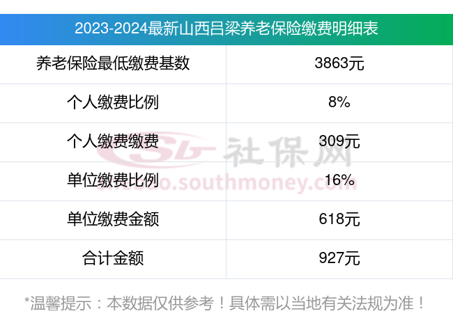 山西吕梁养老保险缴费标准2023-2024最新消息