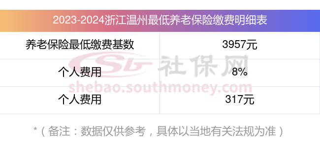 据新社通app显示,浙江温州职工养老缴费基数2023-2024年最新标准是多少,浙江温州养老保险基数明细如下:
