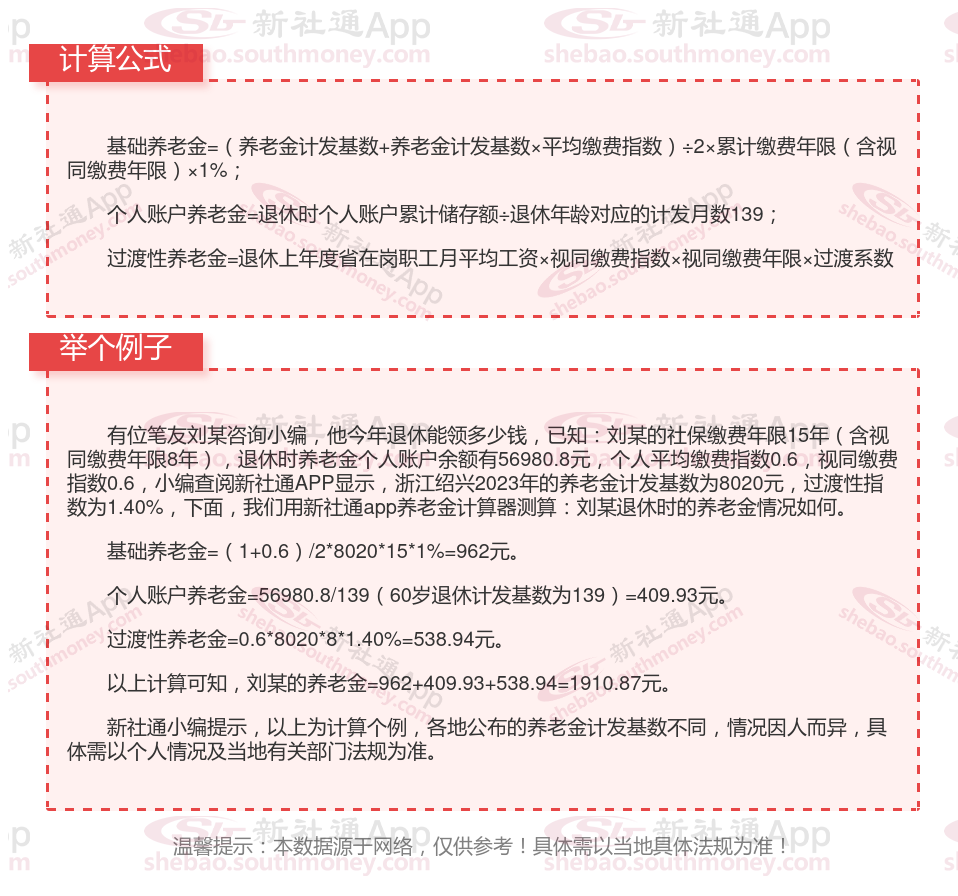 浙江绍兴社保养老保险交满15年能领多少钱?(在线计算举例说明)