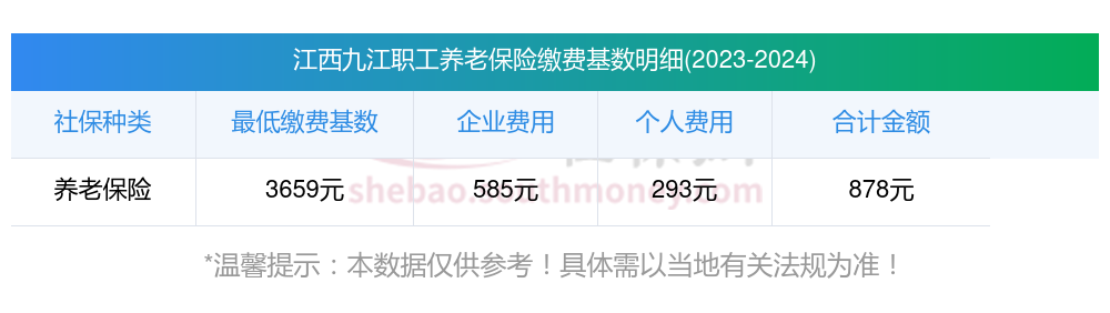 江西九江养老保险缴费基数2023-2024最新标准如下