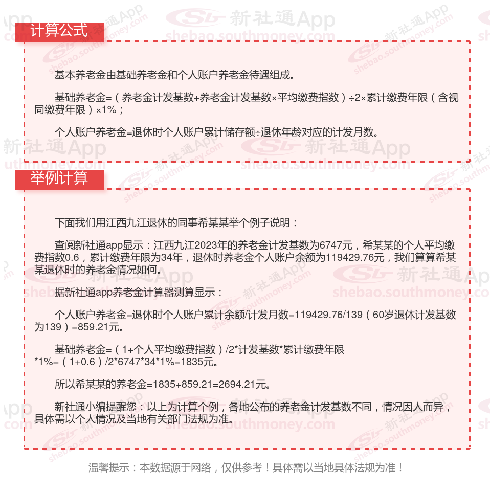 江西九江社保交满15年能领多少钱?(在线计算举例说明)
