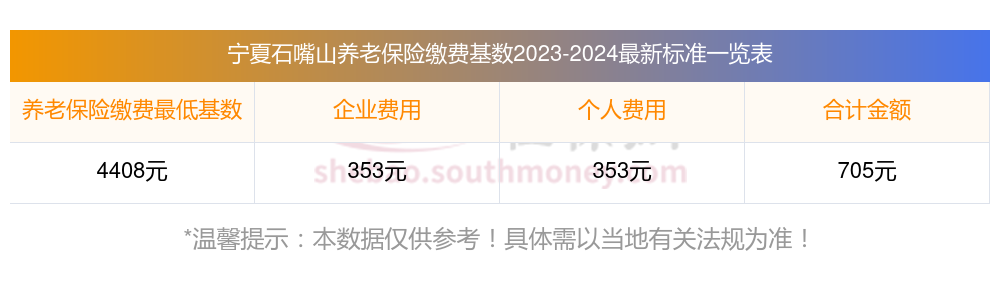 宁夏石嘴山养老保险缴费基数2023年最新标准(最低)